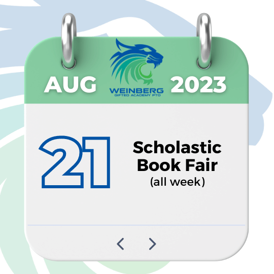 8/21/2023: Scholastic Book Fair (all week) Volunteer here >