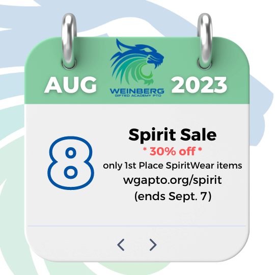 August is jam-packed with events! A back-to-school bash, another restaurant night, the fall book fair, and a huge WGA spirit gear sale... plus, parent-teacher conferences! We're here for it all!