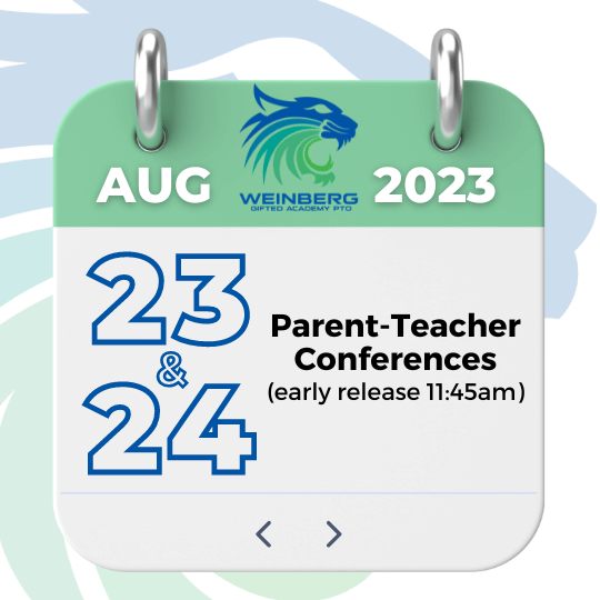 8/23 & 8/24/2023: Parent-Teacher Conferences (early release @ 11:45am)