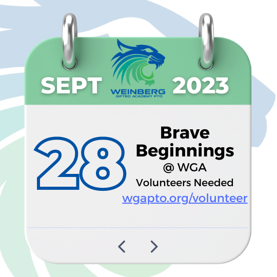 9/28/2023: Brave Beginnings @ WGA. Check ParentSquare for more info.